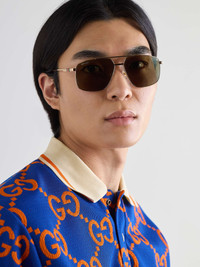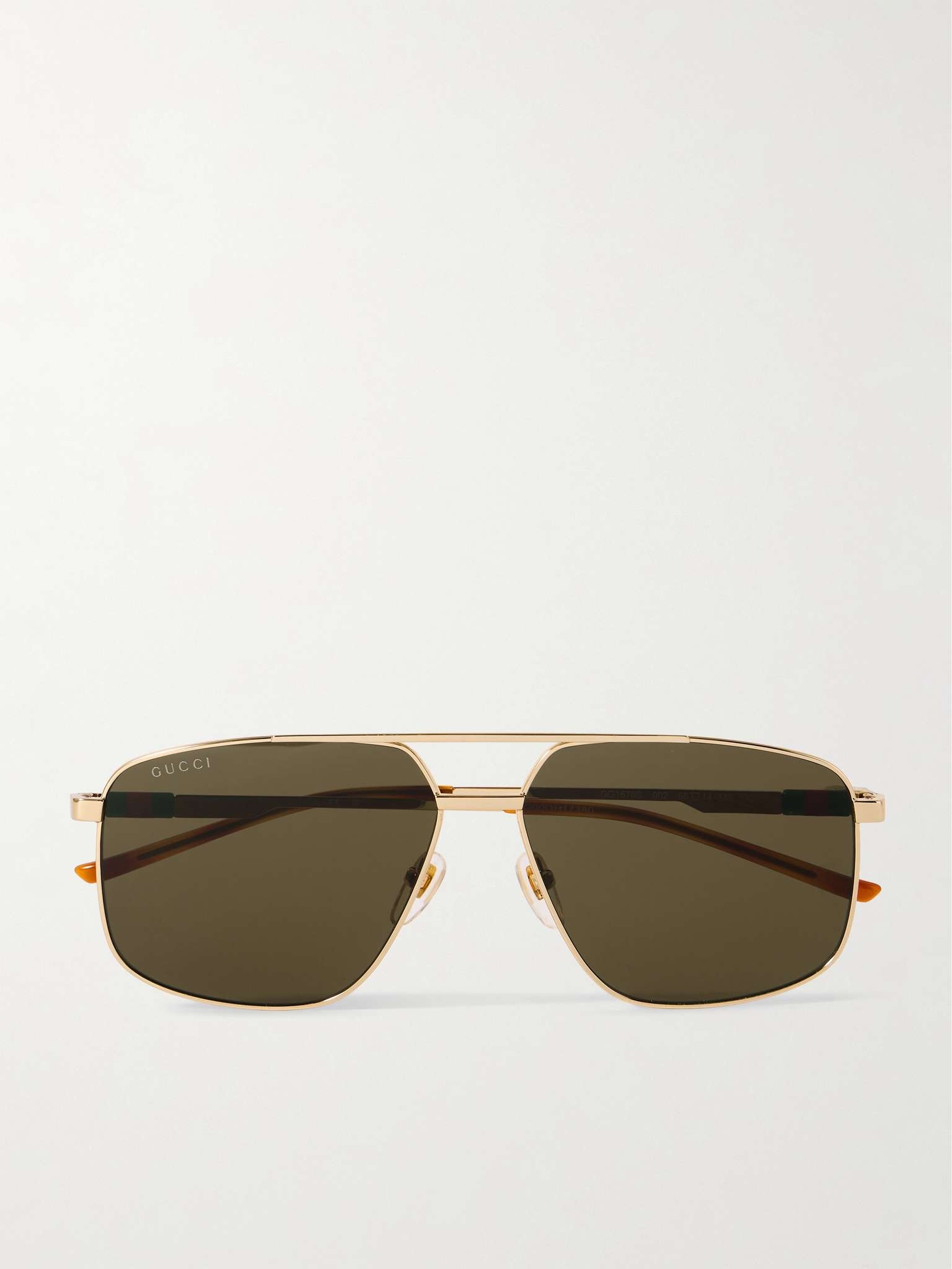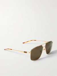 Gucci Eyewear makes classic eyewear its own with signature branding. Detailed with the label's webbing-inspired stripes at the temples, these Aviator-style 'Navigator' sunglasses have been made in Japan from polished gold-tone metal and feature tortoiseshell-covered tips. Details & Care - Gold-tone metal - Come with a case - 100% UV protection