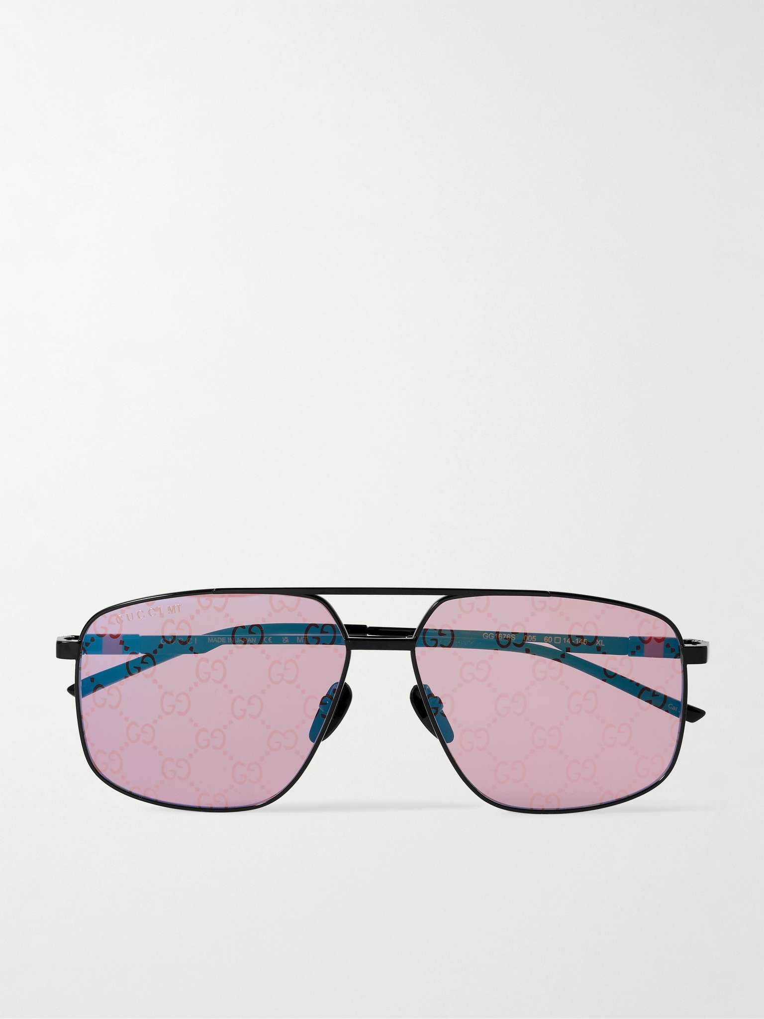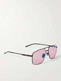Gucci Eyewear makes classic eyewear its own with signature branding. Detailed with the label's webbing-inspired stripes at the temples, these Aviator-style 'Navigator' sunglasses have been made in Japan from black metal and feature 'Violet' logo-print lenses. Details & Care - Black metal - Come with a case - 100% UV protection