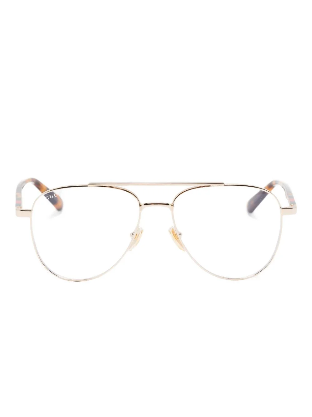 navigator-frame glasses Highlights - Havana brown - Navigator frame - Tortoiseshell effect pattern - Double bridge - Nose pads - Logo detail - These glasses come with a protective case. - All glasses from farfetch are sold as non-prescription frames. Imported Composition Metal (Other) 100%, Gold Plated Metal 100%