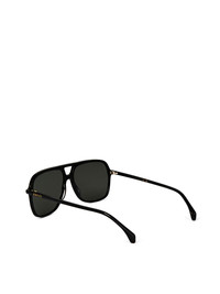 Retro and contemporary styles come together in this pair of black navigator frames inspired by Italian sunglasses from the '80s. Featuring a special hinge called 'flex' to enhance the temples with extra flexibility, the design is enriched by Gucci rivets on the front and a logo detail on the side. - Shiny black acetate frames - Shiny black acetate temples with flexible metal hinge - Gucci rivets on the front and Gucci logo detail on the side - Solid grey lens - 100% UVA/UVB protection - Frame height: 2.2"; Frame Width: 5.7" - GG1042S - Temple length: 5.7"; Lens height: 2", Nose bridge length: .5" - Made in Japan - The glasses will arrive in a velvet case, available in a range of six jewel-toned colors and paired with a coordinating satin lining. The case color will be individually selected for each pair of glasses and comes with a matching satin flannel pouch and ivory microfiber cloth.