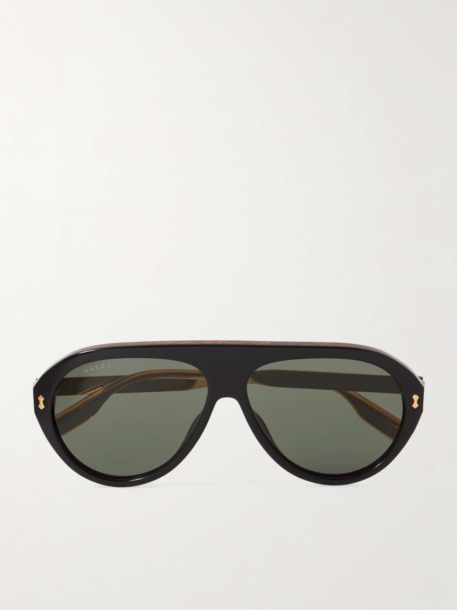 Gucci has always favoured a maximalist approach to design, especially with its sunglasses. These acetate shades have exaggerated aviator-style frames offset by gold-tone arms detailed with the house moniker at the temples. Size & Fit - Frame Width: 15cm / 5.9in - Frame Height: 6cm / 2.4in Details & Care - Black and tonal-brown acetate, gold-tone metal - Come with a case - 100% UV protection