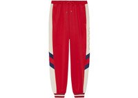 Gucci continues to rewrites the rules of casual fashion. These jogging pants have contrast details, are crafted from red and ivory lightweight noprene, and enriched by the blue and red Web. - Red and ivory lightweight neoprene - Blue and red Web detail - Gucci patch - Elastic waistband - Back pocket with zip - Rib trim at leg opening - Made in Italy - The product shown in this image is a size small