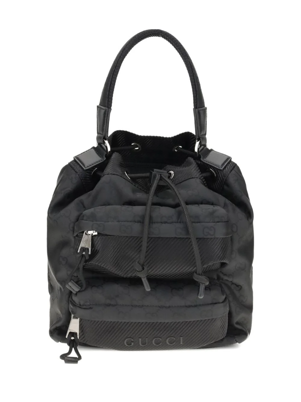 GG pattern drawstring backpack Highlights - Black - Gg pattern - Drawstring closure - Rigid top handle - Two front pockets - Logo lettering - This piece comes complete with a protective dust bag. Made in Italy Composition Lining: Nylon 100% Outer: Nylon 100% SIZE & FIT Measurement DEPTH 7.08 in(18 cm) HEIGHT 11.81 in(30 cm) WIDTH 8.66 in(22 cm)