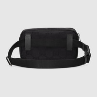 A line of accessories and ready-to-wear is presented for Pre-Fall 2020 made from recycled materials and trims, supporting the House's commitment to sustainability. Gucci Off The Grid is the first collection from Gucci Circular Lines—a concept created to support the House's vision for circular production. Designed for those mindful of their environmental impact, Gucci Off The Grid uses recycled, organic, bio-based and sustainably sourced materials. Regenerated nylon, crafted using recycled sewing thread and trims displays the GG pattern against an opaque background in black. The belt bag is completed with an adjustable buckle closure and front zipper pocket. - Black GG nylon made from ECONYL®—a nylon fabric sourced from regenerated materials that can be recycled and recreated, aiding in decreasing its ecological footprint - Black leather trims made from leather tanned through an alternative metal or chrome free tanning process, reducing the environmental footprint compared to traditional methods - Palladium-toned metal hardware made from recycled brass alloys with nickel-free finishes - Ribbon trims and plastic buckles made from recycled materials - Sewn using recycled polyester thread - Regenerated nylon lining - This item will come with a FSC-certified recycled gift box, shipped flat, and recycled nylon flannel dust bag. Each Gucci Off The Grid product will ship with a dedicated booklet detailing the collection, printed on FSC-certified recycled paper. - Leather detail with Gucci script logo - Exterior: 1 zip pocket - Interior: 1 zip pocket, 1 open pocket - Nylon strap with buckle closure - Zipper closure - 9.5"W x 5.5"H x 2.2"D - Weight: 1lb - Made in Italy