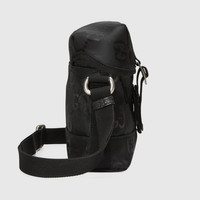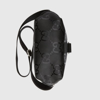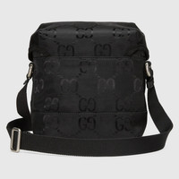 Supporting the House's commitment to sustainability, this messenger bag is part of a line of accessories and ready-to-wear made from recycled materials and trims. Gucci Off The Grid is the first collection from Gucci Circular Lines—a concept created to support the House's vision for circular production. Designed for those mindful of their environmental impact, Gucci Off The Grid uses recycled, organic, bio-based and sustainably sourced materials. - Black GG nylon made from ECONYL®—aa nylon fabric sourced from regenerated materials (from fish nets, carpets and other scraps) that can be recycled and recreated, aiding in decreasing its ecological footprint - Black ribbon trim, leather details and pallidum-toned hardware - Ribbons and cord in recycled polyester that reuse waste or byproducts, reducing the environmental footprint associated with new fossil fuel-based material. - Insert in leather made through an alternative metal or chrome free tanning process, reducing the environmental footprint compared to traditional methods. - This item can fit a cell phone up to 3.1”W x 6.6”H x .4”D - 17.3" strap drop - Weight: .7lbs - 6.3"W x 7.3"H x 2.7"D - Made in Italy - The first model is 6'1" tall, the second model is 5'5" tall
