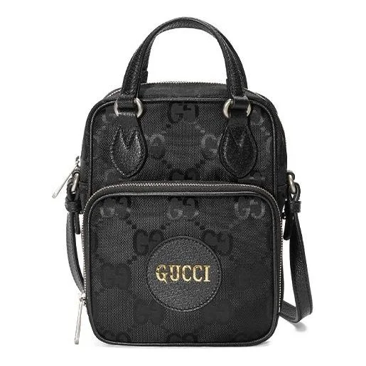 A line of accessories and ready-to-wear is presented for Pre-Fall 2020 made from recycled materials and trims, supporting the House's commitment to sustainability. Gucci Off The Grid is the first collection from Gucci Circular Lines—a concept created to support the House's vision for circular production. Designed for those mindful of their environmental impact, Gucci Off The Grid uses recycled, organic, bio-based and sustainably sourced materials. Regenerated nylon, crafted using recycled sewing thread and trims displays the GG pattern against an opaque background in black. The shoulder bag's rectangular shape is completed with two top handles and a shoulder strap. - Black GG nylon made from ECONYL®—a nylon fabric sourced from regenerated materials that can be recycled and recreated, aiding in decreasing its ecological footprint - Black leather trims made from leather tanned through an alternative metal or chrome free tanning process, reducing the environmental footprint compared to traditional methods - Palladium-toned metal hardware made from recycled brass alloys with nickel-free finishes - Ribbon trims made from recycled materials - Sewn using recycled polyester thread - Regenerated nylon lining - This item will come with a FSC-certified recycled gift box, shipped flat, and recycled nylon flannel dust bag. Each Gucci Off The Grid product will ship with a dedicated booklet detailing the collection, printed on FSC-certified recycled paper. - Leather detail with Gucci script logo - Exterior: 1 zip pocket - Interior: 1 phone case - This item can fit a cell phone up to 3.1”W x 6.6”H x .4”D - Leather top handles with 2" drop; detachable and adjustable shoulder strap with 19.7" drop - Zipper closure - 6.3"W x 8.7"H x 3.4"D - Weight: 1.3lbs - Made in Italy