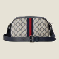 Mirroring the material's historic origins, GG Supreme is introduced in a timeless mix of blue and beige for Gucci Love Parade. The canvas has come to the front of each collection decade after decade to become a hallmark of the House. Here, the classic palette defines this Ophidia camera bag. - Beige and blue GG Supreme canvas - Blue leather trim - Blue and red Web - Silver-toned hardware - Cotton linen lining - Double G - Interior open pocket - Shoulder strap with 19.7" drop. Can be worn cross-body. - Zipper closure - 9.3"W x 5.5"H x 2.8"D - Made in Italy - Weight: 470.gr