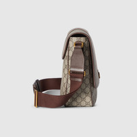 A selection of bags, including mini cross-body bags, briefcases and totes have been reshaped with functional details. Featuring a light construction in a neutral color palette, the GG motif defines each style as an integral design element. As part of the Ophidia line, this beige and ebony GG Supreme canvas cross-body bag is enriched with the Double G and Web. - Beige and ebony GG Supreme canvas - Brown leather trim - Green and red Web - Cotton linen lining - Double G - Inside: 1 zip pocket - Outside: 1 zip pocket - Adjustable shoulder strap with 21.6" drop; length: 39.4" - 55.5" - Flap with magnetic closure - Large: 13"W x 10.6"H x 4"D - Weight: 2.8lbs approximately - Made in Italy
