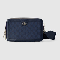 The Ophidia shoulder bags, totes, and top handle bags are presented in new variations of the GG Supreme canvas for Cruise 2024, complete with silver-toned hardware for a touch of metallic contrast. This men's mini bag combines the Double G hardware with a blue and black variation of the classic material. - Blue and black GG Supreme canvas - Black leather trim - Palladium-toned hardware - Cotton linen lining - Double G - Detachable canvas shoulder strap - Zip closure - 9.4"W x 5.7"H x 2.3"D - Made in Italy