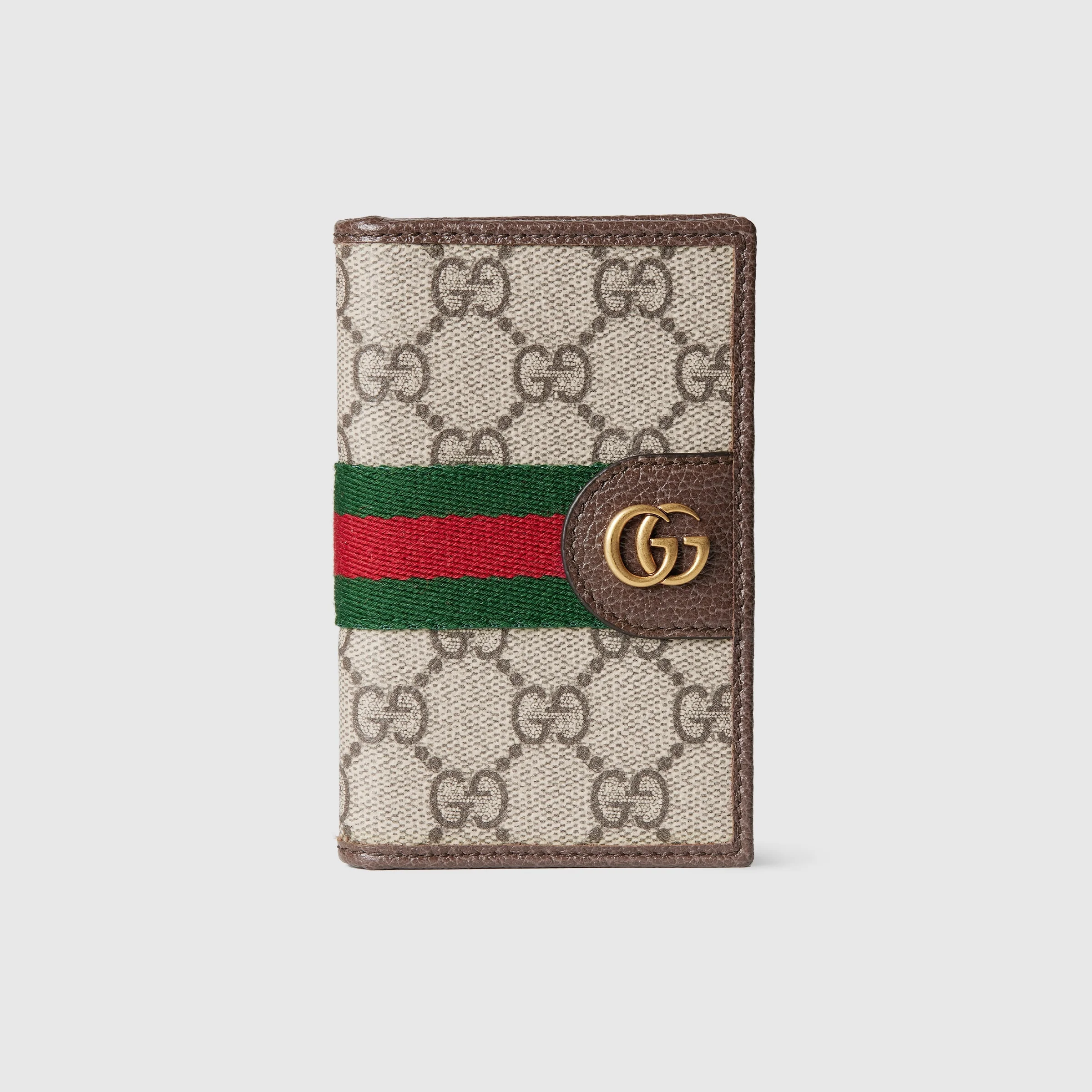 The Ophidia collection evokes the House’s heritage with the signature Web stripe and Double G emblem in light gold-toned finish. This accessory is presented in GG Monogram coated fabric. - Beige and dark brown GG Monogram coated fabric - Dark brown leather trim - Gold-toned hardware - Brown moire lining - Double G - Web detail - Inside: 8 card slots and 2 bill compartments - Closed: 2.9"W x 4.7"H; Open: 5.9"W x 4.7"H - Weight: 0.1lb, approximately - Made in Italy