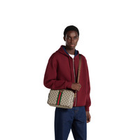 The Ophidia collection evokes the House’s heritage with the signature Web stripe and Double G emblem in light gold-toned finish. The styles are crafted from soft GG Monogram coated fabric, featuring green cotton lining inside. - Beige and dark brown GG Monogram coated fabric - Dark brown leather trim - Gold-toned hardware - Dark green cotton linen lining - Double G - Web detail - Inside: 1 open pocket - Adjustable canvas shoulder strap with 16.9" drop; Length: 35"-50.4" - Zip closure - 11.2"W x 7"H x 2.9"D - Weight: 1.6lbs, approximately - Made in Italy - Fits iPhone Plus, bi-fold wallet, or card case, Airpods