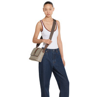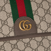 The Ophidia collection evokes the House’s heritage with the signature Web stripe and Double G emblem in light gold-toned finish. The styles are crafted from soft GG Monogram coated fabric, featuring green cotton lining inside. - Beige and dark brown GG Monogram coated fabric - Dark brown leather trim - Gold-toned hardware - Dark green cotton linen lining - Double G - Web detail - Inside: 1 zip pocket and 1 open pocket - Adjustable canvas shoulder strap with 21.6" drop; length: 33.4"-50.4" - Flap closure - 11.6"W x 7.8"H x 3.1"D - Weight: 1.82lbs, approximately - Made in Italy - Fits iPhone Pro Max/Plus, bi-fold wallet or card case, and Airpods