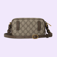The world of Ophidia is enriched by a contemporary mini bag, crafted from the timeless mix of beige and ebony GG Supreme canvas. The logo appeal of this style is deepened by the green and red Web stripe and Double G hardware—archival details that celebrate Gucci's history. - Beige and ebony GG Supreme canvas - Brown leather trim - Gold-toned hardware - Green and red Web - Double G - Back loops for belt attachment - Inside: 2 card slots and 1 hook - Exterior pocket with zipper closure - Shoulder strap with 19.7" drop - Zip closure - 7.1"W x 4.3"H x 2.4"D - Made in Italy