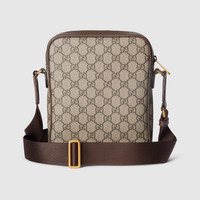 The Ophidia collection evokes the House’s heritage with the signature Web stripe and Double G emblem in light gold-toned finish. The styles are crafted from soft GG Monogram coated fabric, featuring green cotton lining inside. - Beige and dark brown GG Monogram coated fabric - Dark brown leather trim - Gold-toned hardware - Green cotton linen lining - Double G - Web detail - Adjustable canvas shoulder strap with 21.6" drop; Length: 32.7"-57.1" - Zip closure - 7.8"W x 9"H x 1.9"D - Weight: 1lb, approximately - Made in Italy - Fits iPhone Pro Max/Plus, bi-fold wallet or card case, and Airpods