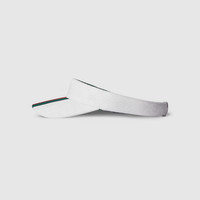 From the 1970s 'Gucci Tennis' sneaker to the present day, the House continues to express its connection to the sport with signature pieces focusing on heritage as well as innovation. This structured visor is presented in Original GG cotton canvas and enhanced with a green and red Web stripe. - White Original GG cotton canvas - Green terry cloth trim - Web stripe - Adjustable back closure - Made in Italy