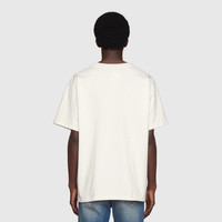 A statement print defines this oversize T-shirt, crafted from ivory cotton jersey and specifically washed for a vintage effect. The bold logo is shown throughout the Pre-Fall 2020 collection, featuring the “Original Gucci” motto and the House’s distinctive colors, green and red. - Washed ivory organic cotton jersey - Green and red "Original Gucci" print - This product contains organic cotton where the cultivation and manufacturing process restrict the use of chemicals, eliminate pesticides or artificial fertilizers and incorporate methods that respect biodiversity, improve soil quality, and reduce water consumption. - Crewneck - Oversize fit - Made in Italy - The product shown in this image is a size medium