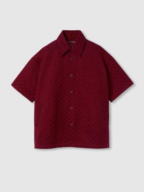 In the Spring Summer 2025 collection, shirts reinterpret classic styles in oversize silhouettes, with a point collar and chest pocket drawing from a boxy design. This style appears in a light blue GG cotton jacquard. - Light blue GG cotton jacquard - Point collar - Dropped shoulder - Short sleeves - Chest pocket - Button closure - Oversize fit - Length: 31.1"; Shoulder: 23.4"; Chest: 54.3"; Sleeves length: 22.2"; Neck width: 17.5"; based on a size 48 IT - Made in Italy - The product shown in this image is a size 48 (IT)