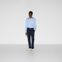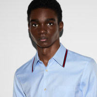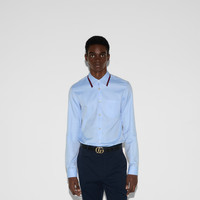 Classics such as elegant shirts and tailored jackets throughout the Cruise 2025 collection stand out with subtle details that elevate everyday looks. This Oxford cotton shirt features a blue and red Web stripe across the collar. - Pale blue Oxford cotton - Point collar with Web detail - Long sleeves - Chest pocket - Buttoned cuffs - Button closure - Length: 29.9"; Shoulder: 18.3"; Chest: 42.1"; Sleeves length: 35.9"; Neck width: 16.3"; based on a size 48 IT - Made in Italy - The product shown in this image is a size 48 (IT)