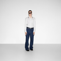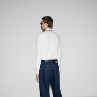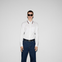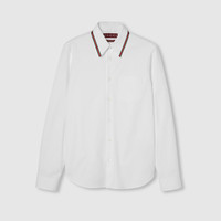 Classics such as elegant shirts and tailored jackets throughout the Cruise 2025 collection stand out with subtle details that elevate everyday looks. This Oxford cotton shirt features a Web stripe across the collar. - White Oxford cotton - Point collar with Web detail - Long sleeves - Chest pocket - Buttoned cuffs - Button closure - Length: 29.9"; Shoulder: 18.3"; Chest: 42.1"; Sleeves length: 35.9"; Neck width: 16.3"; based on a size 48 IT - Made in Italy - The model is 6'1" and is wearing size 15+