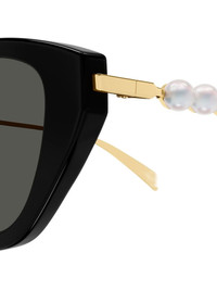 pearl-embellished cat-eye sunglasses Highlights - Black - Pearl embellishments - Gold-tone temples - Cat-eye frame - Logo detail - Straight temples - These glasses come with a protective case. Made in Italy Composition Acetate 100%, Metal 100% SIZE & FIT Measurement Arm Length 5.51 in(14 cm) Bridge Width 0.74 in(1.9 cm) Lens Diameter 1.45 in(3.7 cm) Total Width 5.59 in(14.2 cm)