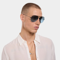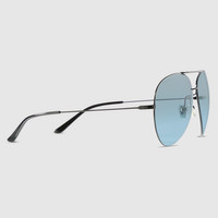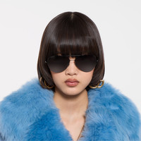 Introducing Spring Summer 2026. Distinctive eyewear shapes are enriched with emblematic signatures that create a fil rouge in the collection. This style is featured in the "La Sciura" look of La Famiglia. Presented with a black metallic frame, it features an Interlocking G detail across the temples and a gradient mirrored lens. - Black metallic frame - Black metallic temples with an Interlocking G detail - Light blue and gradient silver mirrored lens - 100% UVA/UVB protection - Adjustable nose pads - GG2172S - Temple length: 5.5"; Lens height: 2.2"; Nose bridge length: 0.6" - Frame height: 2.2"; Frame width: 5.9"; Hinge to hinge: 5.7" - Made in Japan - The eyewear case in black is complete with a magnetic closure and GG motif interior.