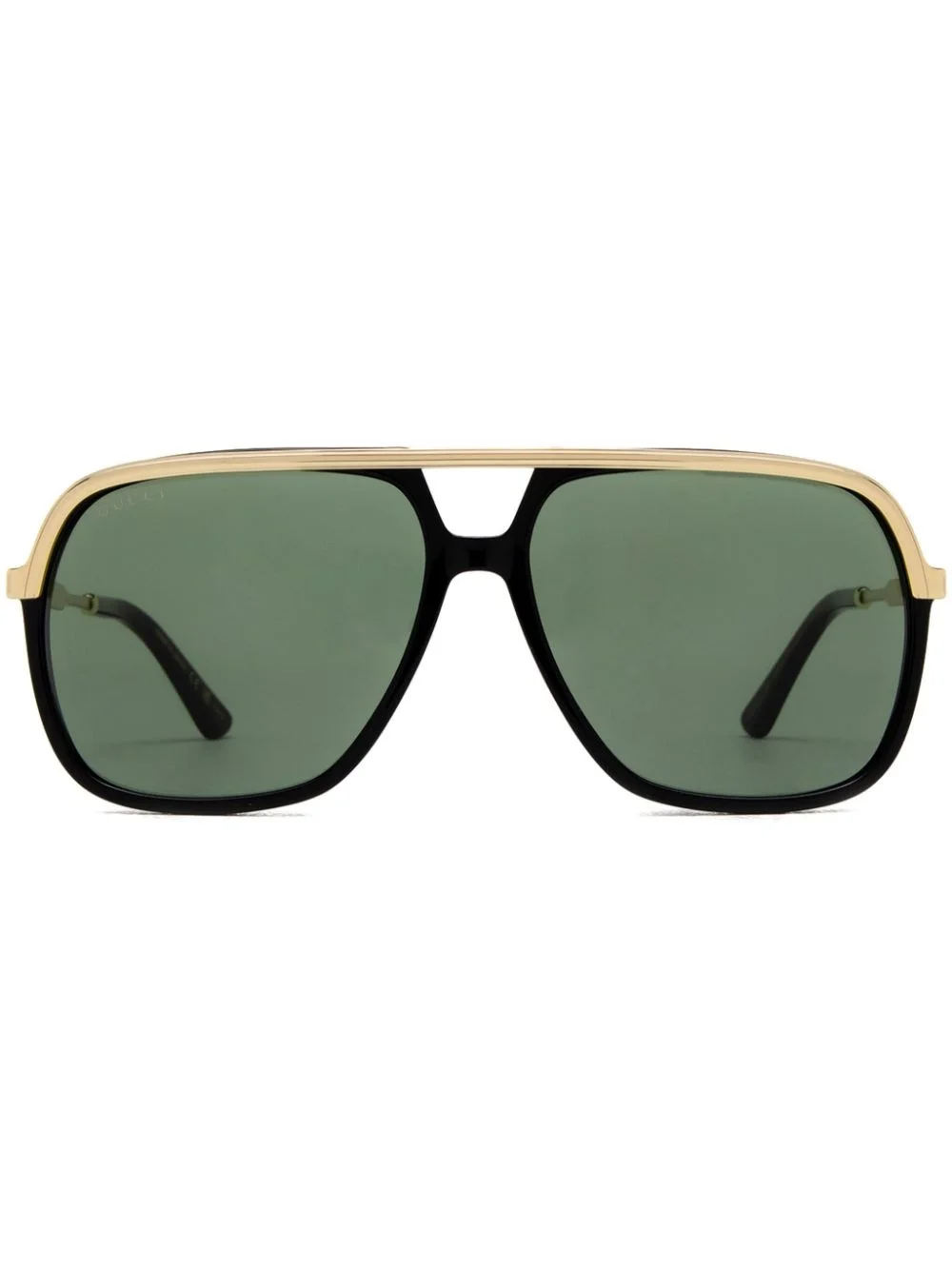 Web detail navigator-frame sunglasses All we can hear is the Top Gun theme tune when we look at these Gucci pilot metal sunglasses. Designed with an Interlocking G logo to the temple and a signature Web detail to each arm, these stylish pair are perfect for any Maverick's out there. Made in United States Composition Metal (Other) 100% SIZE & FIT Measurement Arm Length 5.7 in(14.5 cm) Bridge Width 0.55 in(1.4 cm) Lens Diameter 2.24 in(5.7 cm)