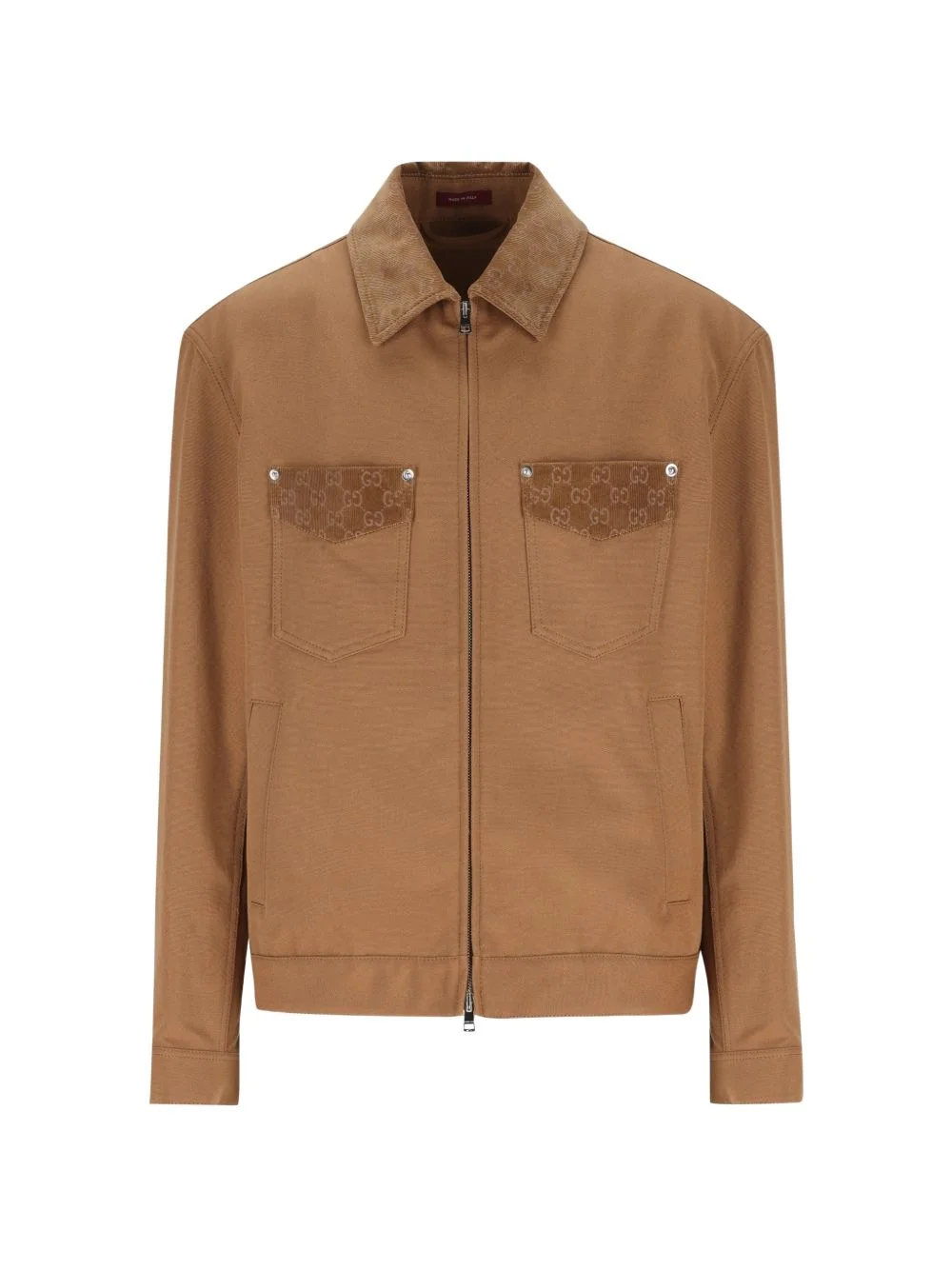 pocket-details cotton jacket Highlights - Brown - Gg pattern details - Cotton Made in Italy Composition Cotton 100% Washing instructions Read Manufacturer Guidelines