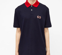 Referencing the initials of the House's founder Guccio Gucci, the GG embroidery decorates the front of this navy polo, crafted from stretch cotton piquet. The preppy influence seen throughout the House narrative continues to evolve, with a series of classic designs treated for a vintage-looking appearance. - Washed navy stretch cotton piquet - Contrast red collar - GG embroidery - Short sleeves - Button-through placket with mother of pearl buttons - 93% cotton and 7% elastane - Made in Italy - The model is 5'9" and is wearing size small