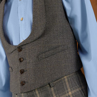 Further exploring tailoring possibilities, suits inspired by made-to-measure retro elegance appear throughout the Gucci Love Parade collection. Introducing a selection with an array of different check patterns and fabrics - often mismatched for an interesting game of dissonance - ties and vests complete the attire. - Black and brown Prince of Wales wool - Single breasted - Shawl collar - Back buckle - Front pockets - Four-button closure - Length: 19.9", based on a size 44 (IT) - Made in Italy - The product shown in this image is a size 44 (IT)