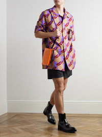 Oversized Camp-Collar Printed Cotton-Poplin Shirt Purple