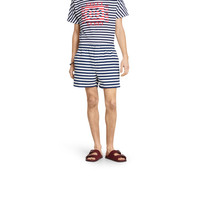 Maritime-inspired designs enrich casual silhouettes perfect for the seaside, featuring stripes, anchor motifs and the House logo in the Pre-Fall 2025 collection. This pair of shorts is presented in blue and white GG cotton jacquard and features an allover striped print. - Blue and white GG cotton jacquard - Allover striped print - Elastic waistband - Front side pockets - Back pockets - Made in Italy