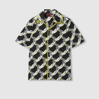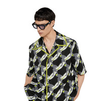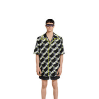 In the Spring Summer 2025 collection, shirts feature infinity prints with surfers, dolphins, hibiscus flowers, and banana leaves. This cotton poplin shirt features an allover surfer print and is elevated further with a beaded fringe trim. - Black and white light cotton poplin - All over surfer print - Contrast beaded fringe details on the collar and button placket - Button placket - Short sleeves - Front patch pockets - Chest pocket - Folded effect - Front button closure - Length: 33.1"; Shoulder: 21.1"; Chest: 23.6"; Sleeves length: 22.8"; based on a size 48 IT - Made in Italy - The product shown in this image is a size 50 (IT)