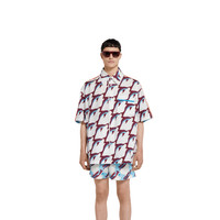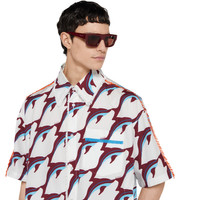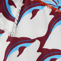 In the Spring Summer 2025 collection, shirts feature infinity prints with surfers, dolphins, hibiscus flowers, and banana leaves. This cotton poplin shirt features an allover dolphin print and is elevated further with a beaded fringe trim. - White, light blue and bordeaux light cotton poplin - All over dolphin print - Point collar - Chest pocket - Short sleeves - Two side pockets - Contrast beaded fringe details on the collar, shoulders, button placket, and chest pocket - Front button closure - Oversize fit - Length: 31.1"; Shoulder: 23.4"; Chest: 54.3"; Sleeves length: 22.2"; Neck width: 17.5"; based on a size 48 IT - Made in Italy - The product shown in this image is a size 52 (IT)