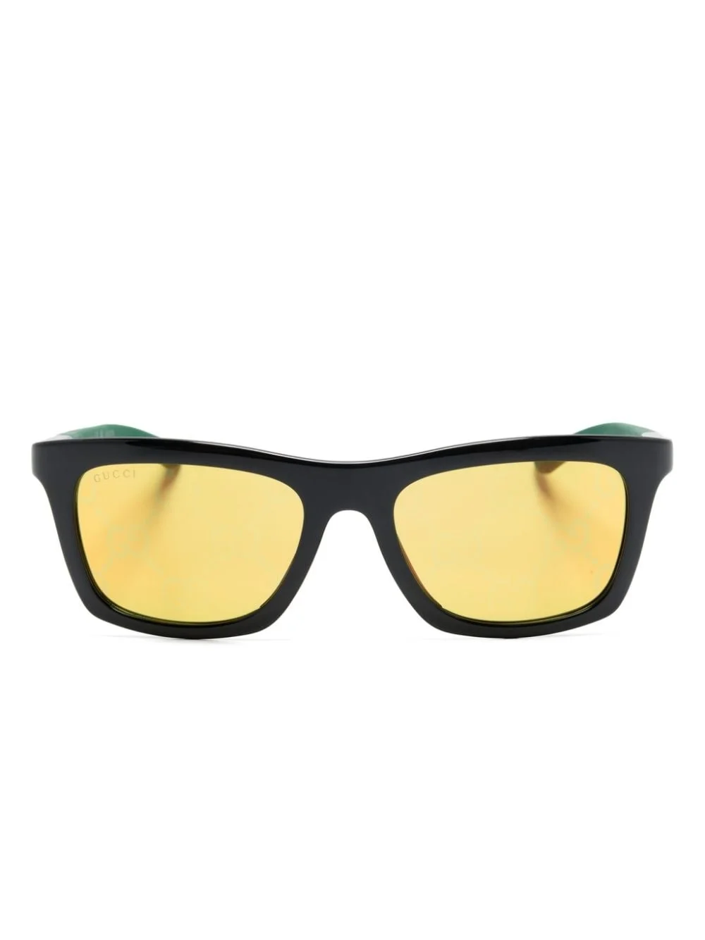 rectangle-frame sunglasses Highlights - Black/green - Acetate - Rectangle frame - Yellow tinted lenses - Photochromic lenses - Straight arms - Logo print at the arm - Curved tips - These glasses come with a protective case. Made in Italy Composition Acetate 100% SIZE & FIT Measurement Arm Length 5.31 in(13.5 cm) Bridge Width 0.7 in(1.8 cm) Lens Diameter 2.12 in(5.4 cm) Total Width 5.7 in(14.5 cm)