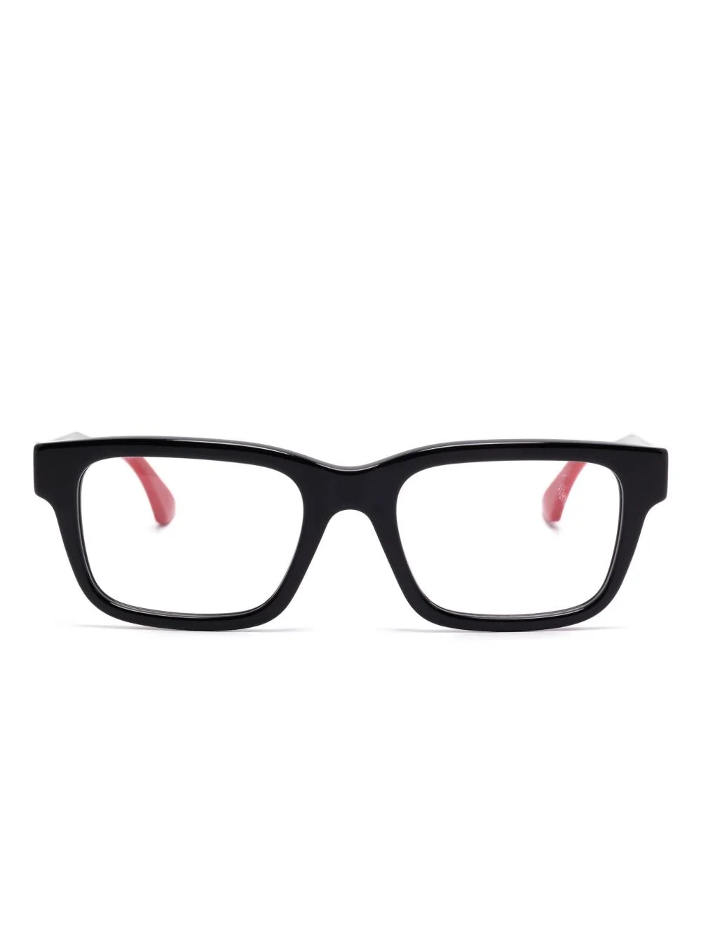 rectangular-frame glasses Highlights - Black - Curved tips - Logo plaque at the arm - These glasses come with a protective case. - All glasses from farfetch are sold as non-prescription frames. Imported Composition Acetate 100% SIZE & FIT Measurement Arm Length 5.7 in(14.5 cm) Bridge Width 0.78 in(2 cm) Lens Diameter 2.12 in(5.4 cm) Total Width 5.82 in(14.8 cm)