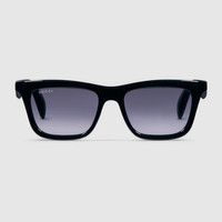 The Pre-Fall 2025 eyewear collection blends statement silhouettes from the archives with a contemporary touch. These rectangular frame sunglasses feature a gradient dark grey lens and a subtle Gucci logo across the temples. - Shiny black acetate frames - Shiny black acetate temples with Gucci logo - Gradient dark grey lens - 100% UVA/UVB protection - GG1933S - Temple length: 5.7"; Lens height: 1.4"; Nose bridge length: 0.7" - Frame height 1.8"; Frame width 5.6"; Hinge to hinge 5.1" - Made in Italy - The eyewear case in the House’s signature Rosso Ancora red hue is complete with a magnetic closure and white interior.