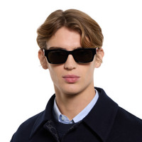 The House's eyewear collection continues to reinterpret emblematic motifs, from the GG, Web, bamboo, Horsebit and equestrian inspirations, in sumptuous materials, intricate craftsmanship, and fresh hues. Presented in shiny black acetate, these rectangular sunglasses are defined by an enameled Web and metal plaque near the hinge. - Shiny black acetate frame - Shiny black acetate temples with enameled Web and metal plaque near the hinge - Solid grey lens - 100% UVA/UVB protection - GG2084S - Temple length: 5.7"; Lens height: 1.4"; Nose bridge length: 0.7" - Frame height: 5.6"; Frame width: 1.6"; Hinge to hinge: 5" - Made in Italy - The eyewear case in black is complete with a magnetic closure and GG motif interior.