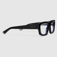 In the Spring Summer 2025 collection, the eyewear pieces blend a rectangular silhouette with signature motifs in an inspired design. Crafted from black acetate, these sunglasses feature a well-proportioned frame and a Gucci script logo detail on the temples. - Black acetate frame - Black acetate temples with Gucci script and silver metal end tips - Clear lenses - 100% UVA/UVB protection - GG1926S - Temple length: 5.5"; Lens height: 1.5", Nose bridge length: 0.7" - Frame height 1.9"; Frame width 5.7" - Made in Italy - The eyewear case in the House’s signature Rosso Ancora red hue is complete with a magnetic closure and white interior.