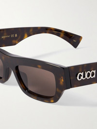 Gucci Eyewear's sunglasses have been made in Italy from thick tortoiseshell acetate with rectangle frames. They're accented with the brand's silver-tone name plaque along the arms. Details & Care - Tortoiseshell acetate - Come with a case - 100% UV protection