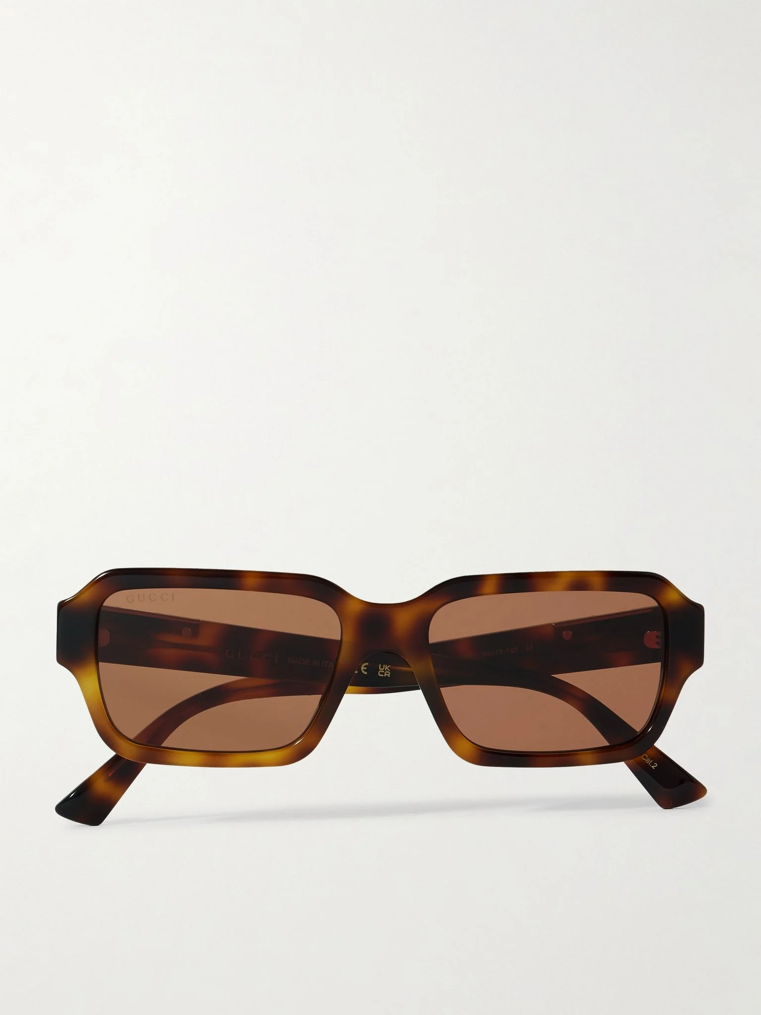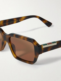 Gucci often styles its runway outfits with bold sunglasses like this rectangular-frame pair. They've been made in Italy from tortoiseshell recycled-acetate and feature the iconic webbing detail, rendered in enamel, along the gold-tone temples. Details & Care - Tortoiseshell recycled-acetate, gold-tone metal, red and green enamel - Come with a case - 100% UV protection