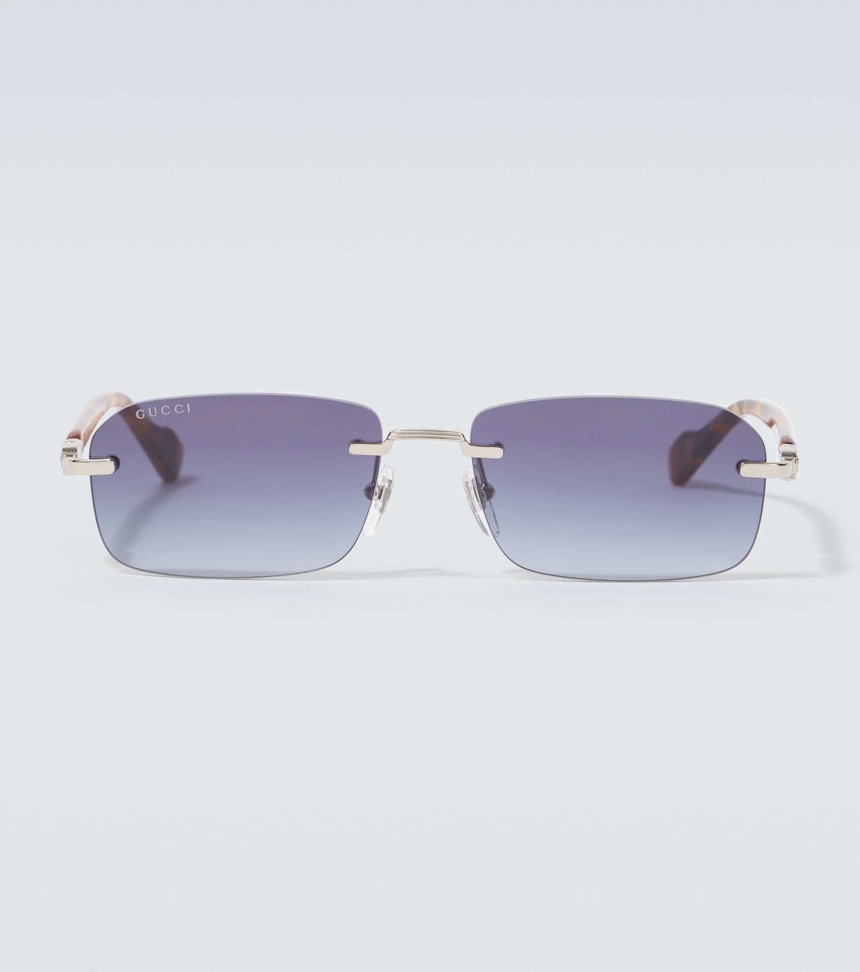 These sunglasses from Gucci are feature metal frames with gradient lenses. Made in Japan, they showcase a rectangular silhouette. Product Details - Frame material: metal, acetate - Frame color: brown, silver - Lens filter category 3 - Lens color: blue - Made in Japan - Includes: hard case, cleaning cloth - The color of the case may vary - Item number: P01054546 Size & Fit - Lens width: 55mm-2.15" - Bridge size: 16mm-0.65" - Earpiece length: 150mm-5.9"