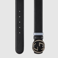 This striking men's belt is presented as part of the Cruise 2026 collection. The Interlocking G hardware offers easy reversibility through a simple pin on the buckle. The ruthenium-toned finish with a slightly shiny effect further elevates the style. - Black leather on the one side, grey leather on the other - Ruthenium-toned hardware - Detachable Interlocking G buckle - 1.5" width - Made in Italy - Can be worn as a hip or waist belt. Sizing will differ based on where the belt is worn, please refer to the size guide to find your size.