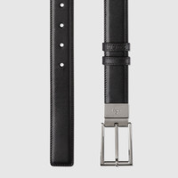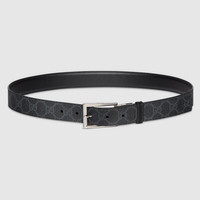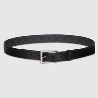 Connecting the House's past and present, historical codes continue to be interpreted in new ways. This black leather belt reverses to black and blue GG Supreme canvas, offering an alternative look. A rectangular buckle closure finishes the accessory. - Black leather reverses to black and blue GG Supreme canvas - Palladium-toned hardware - Belt loop with Gucci embossed detail - Rectangular buckle - 1.2" width - Made in Italy - Can be worn as a hip or waist belt. Sizing will differ based on where the belt is worn, please refer to the size guide to find your size.