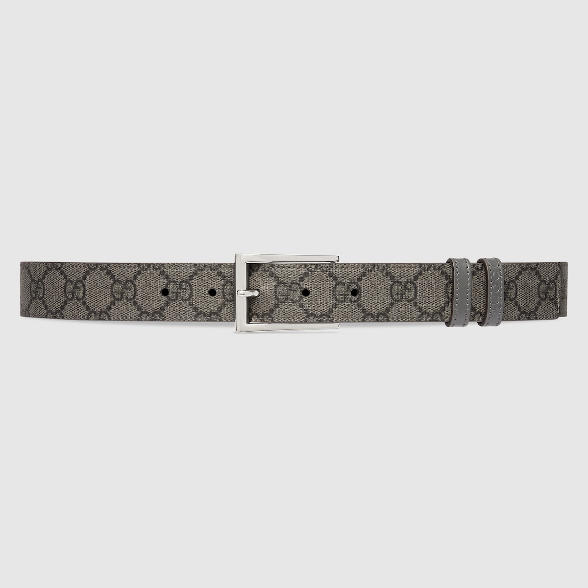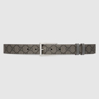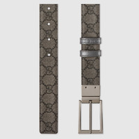 Connecting the House's past and present, historical codes continue to be interpreted in new ways. This grey leather belt reverses to black GG Supreme canvas, offering an alternative look. A rectangular buckle closure finishes the accessory. - Grey leather, reverses to grey and black GG Supreme canvas - Palladium-toned hardware - Belt loop with Gucci embossed detail - Rectangular buckle - 1.2" width - Made in Italy - Can be worn as a hip or waist belt. Sizing will differ based on where the belt is worn, please refer to the size guide to find your size.