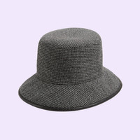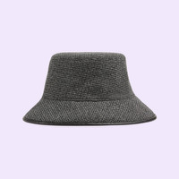 The bucket hat recalls the retro sportswear influences seen throughout the House's design narrative. Crafted from wool with a leather patch detail, it reverses to Original GG canvas. - Black and grey wool on one side - Black Original GG canvas on the other side - Interlocking G leather patch - Made in Italy