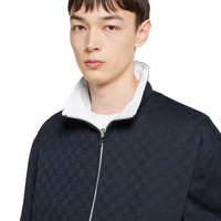 Maritime-inspired designs enrich casual silhouettes perfect for the seaside, featuring stripes, anchor motifs and the House logo in the Pre-Fall 2025 collection. This zip jacket appears in dark blue GG cotton gabardine on one side and white cotton gabardine on the other. - Dark blue GG cotton gabardine on one side and white cotton gabardine on the other - Embossed Gucci logo - Stand-up collar - Long sleeves - Front pockets - Elasticated waistband - Front zip closure - Made in Italy