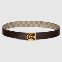 The GG Marmont collection introduces an archive-inspired silhouette with a framed Double G. Contrast stitching further highlights the refined craftsmanship. - Beige and dark brown soft GG Supreme on one side, brown leather on the other - Light-gold toned hardware - Framed Double G buckle - 1.3" width - Can be worn as a hip or waist belt. Sizing will differ based on where the belt is worn, please refer to the size guide to find your size.
