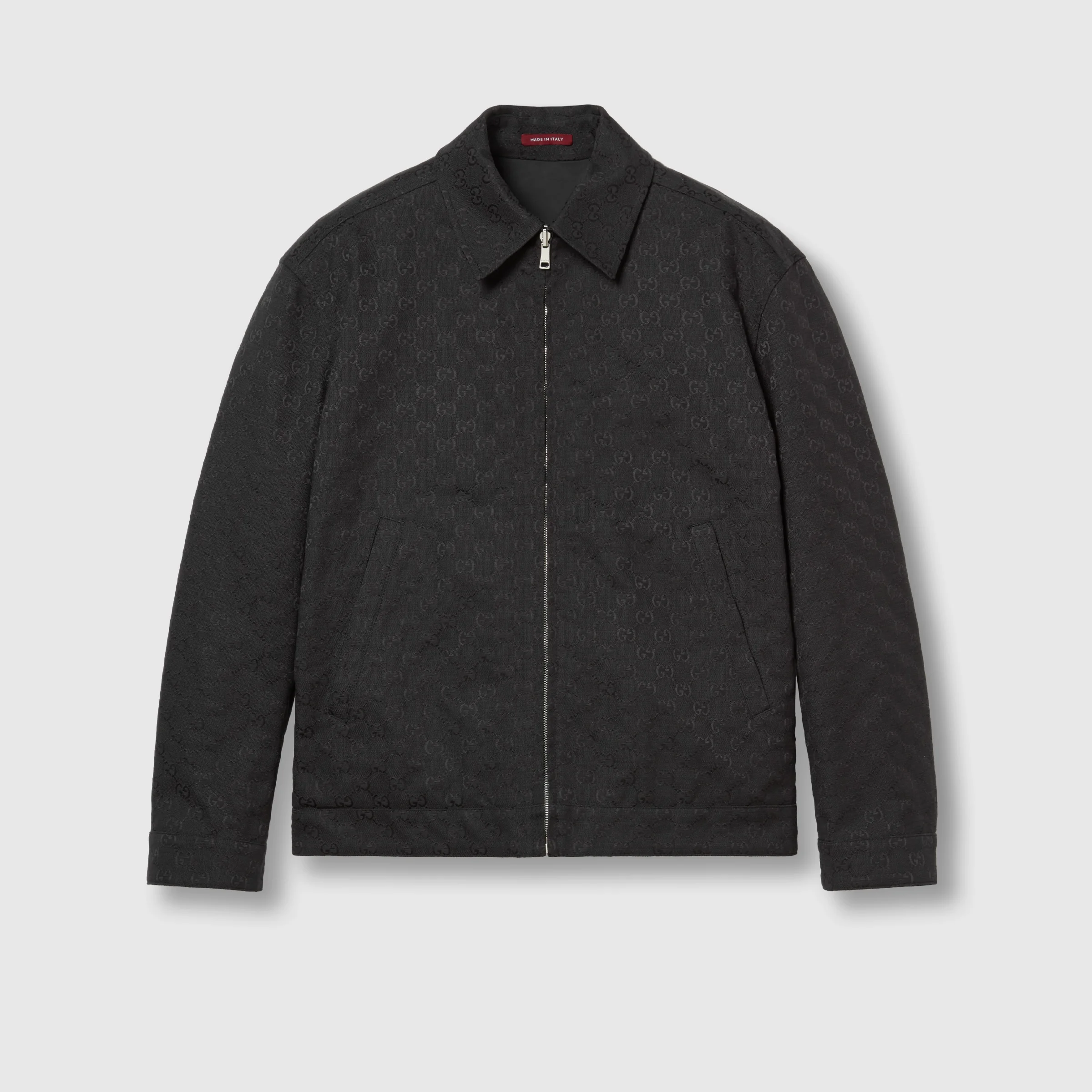The House reinvents the essential men's wardrobe for the Pre-Fall 2024 collection, with wearabilty and fit becoming key statements. This reversible jacket is crafted from black nylon twill on one side and Original GG canvas on the other, providing many styling options. - Black nylon twill on one side, Original GG canvas on the other - Reversible - Point neck - Side pockets - Shoulder drop: 23.2"; based on a size 48 - Chest: 25.3"; based on a size 48 - Sleeves length: 25.1"; based on a size 48 - Zip closure - Length: 26.3"; based on a size 48 - Made in Italy - The model is 6'2" and is wearing size 48 (IT) - Inner fabric: 64% Polyester, 36% Elastomultiester - Outer fabric: 70% Cotton, 30% Polyester - Lining: 100% Cotton - Embroidery: 100% Polyester