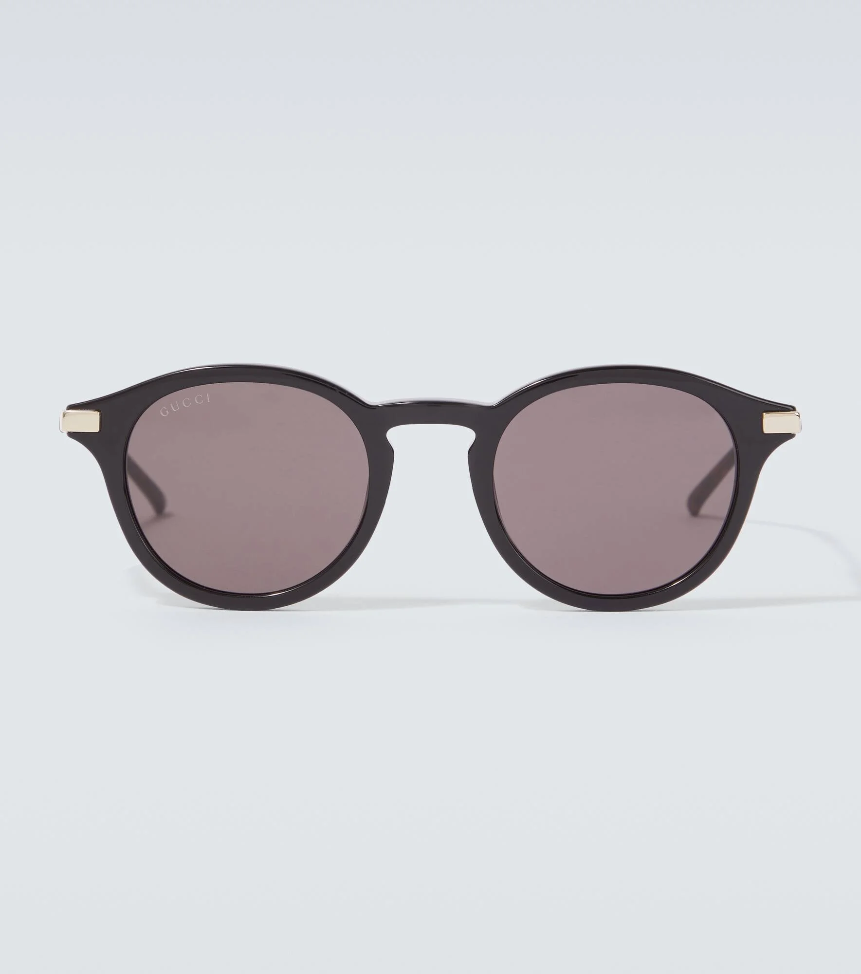 These round sunglasses from Gucci are made in Japan with tinted lenses. The feature logo lettering and the iconic Web-Stripe detail at the templates. Product Details - Frame material: acetate, metal - Frame color: black - Lens filter category 3 - Lens color: grey - Made in Japan - Includes: logo-embossed case, cleaning cloth - The color of the case may vary - Item number: P01054549