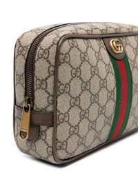Savoy leather wash bag Highlights - Brown - Calf leather - Gg supreme canvas - Signature web detailing - Gold-tone logo plaque - Top zip fastening - Main compartment - Internal zip-fastening pocket Made in Italy Composition Outer: Calf Leather 100% SIZE & FIT Measurement DEPTH 2.36 in(6 cm) HEIGHT 5.9 in(15 cm) WIDTH 9.05 in(23 cm)